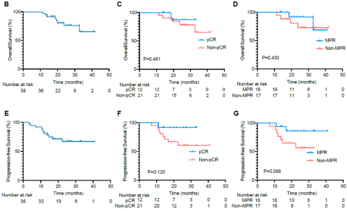 中位随访26.3个月,中位PFS和中位OS均未到达,2年PFS率为66.9%,2年OS率为73.1%;亚组分析显示,病理缓解(达到pCR或MPR)的受试者获得更好的PFS和OS。